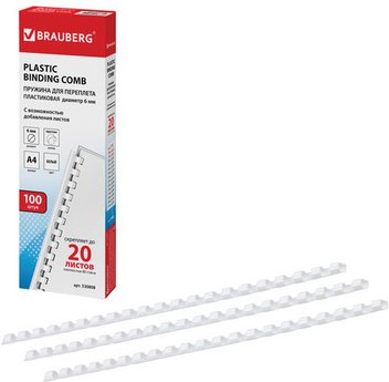 Пластиковая пружина для переплета BRAUBERG A4 6 мм 100 шт 530808 (белый)