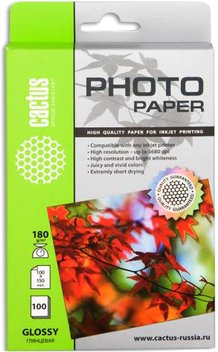 Фотобумага CACTUS Глянцевая 10x15 180 г/м2 100 листов [CS-GA6180100E]