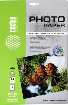 Бумага с магнитным слоем CACTUS Матовая A4 690 г/кв.м. 2 листа (CS-MMA46902)